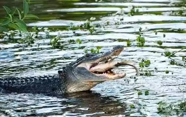 5.短吻鱷吃魚。短吻鱷有兩種,一種是中國的揚子鱷,一種是美國的密河鱷。