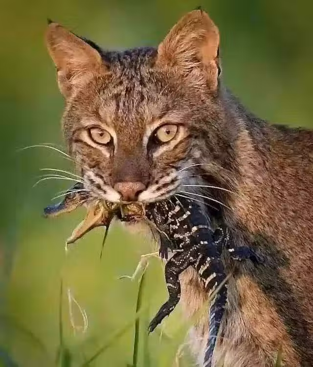 7.猞猁擒拿小鱷魚。對猞猁而言,這只小鱷魚是一道美味可口的點心。