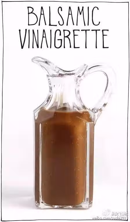 食材:橄欖油100ml、義大利香醋50ml、第戎芥末醬15ml、龍舌蘭糖漿15ml、大蒜粉少量、鹽少量、胡椒粉少量