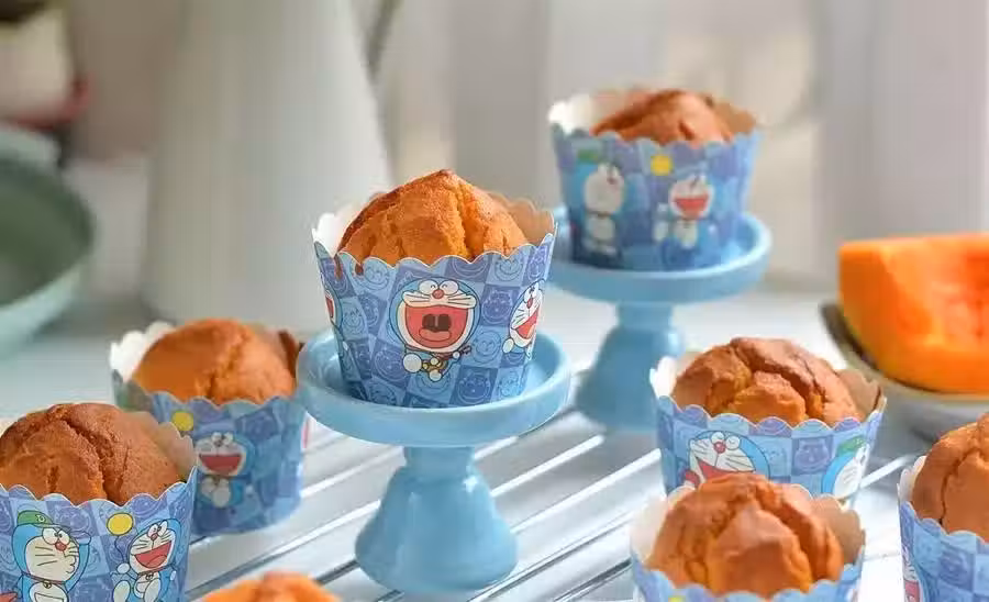2個雞蛋做11杯蛋糕,不打發雞蛋不放黃油,拌一拌就烤蓬鬆暄軟。秋冬季節的南瓜非常香甜,而且物美價廉,用來做點兒小糕點真是太好不過了。因為它自帶甜味,可以減少糕點中糖量。