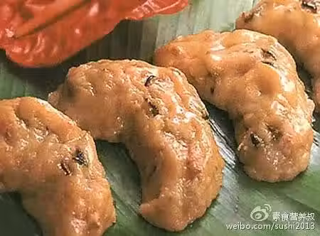 3、盤上鋪糯米粉,以兩手合捏一個濃漿,放盤上沾糯米粉,再放入抹油盤上,放蒸籠蒸20分鐘,拿出來雙面抹油,放盤上即可食。