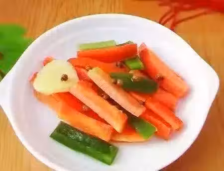 胡蘿蔔1條、芹菜50g、青椒1個、鹽適量、冰糖適量