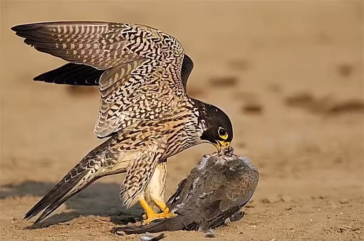 游隼在交尾中撕鳥肉吃,三頭野豬反殺一隻大花豹,罕見的36張照片