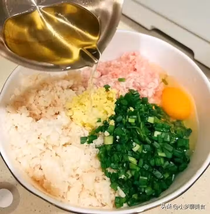 做法:豬肉蓮藕打碎,所有食材混合熱油。生抽+老抽+蚝油+麻油+雞精+十三香+鹽順時針攪拌均勻。