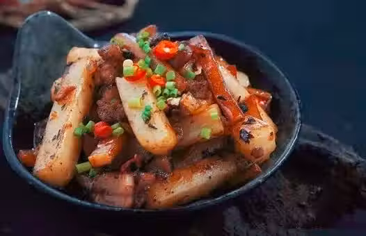 年糕 (450克)、貢丸 (4個)、尖椒 (2個)。