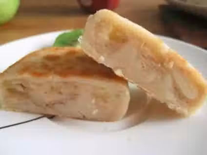 5、電餅鐺加熱,把香蕉盒子放進去烙熟。