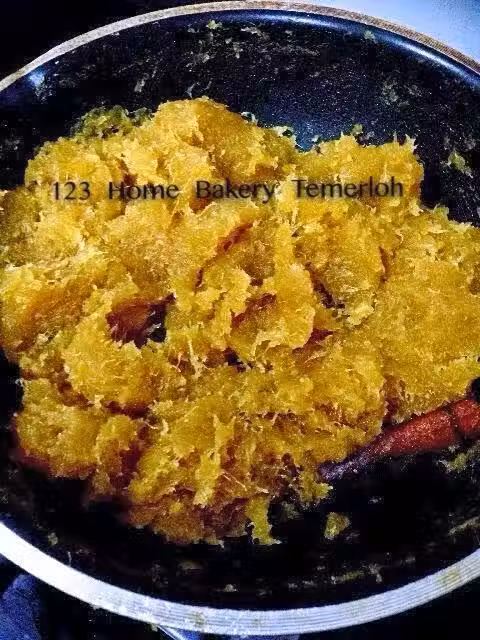 3) 將B加入拌勻,再繼續煮至完全收乾成泥狀鳳梨餡。熄火拿起待涼。