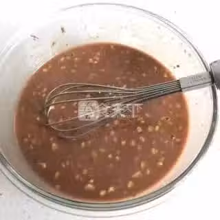 3、將上面兩種材料混合,攪拌均勻(顆粒物是巧克力內的榛果)。