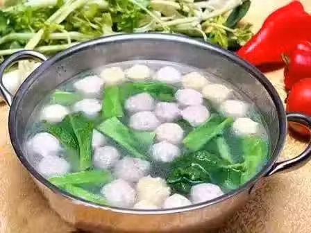 3肉丸浮起時,加入洗乾淨的青菜,加點鹽