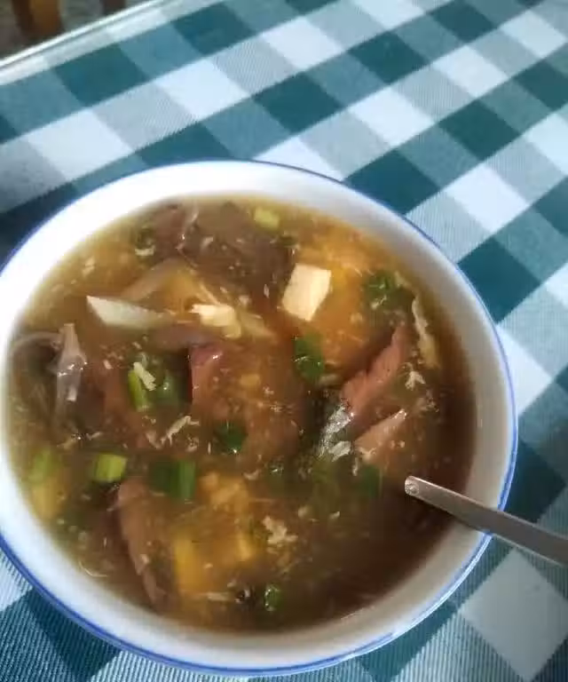 主料:豬紅,豆腐,酸筍,木耳,瘦肉,醋,洋蔥,鹽,胡椒,生薑,生麵粉。
