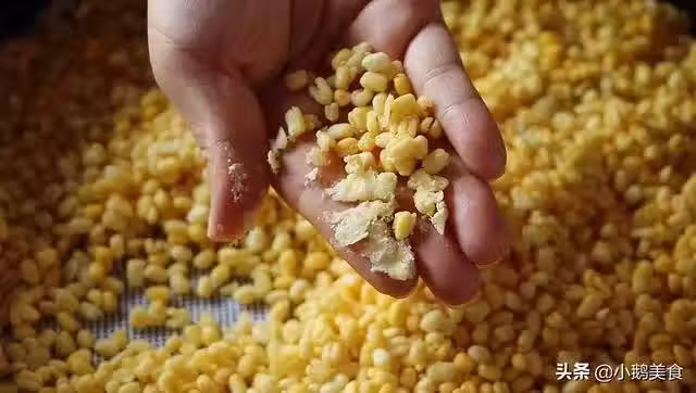 3、倒在盆里用勺子碾碎。手動壓碎的綠豆泥,沒有放破壁機里打的細膩,但是勝在不需要加水,下一步製作時會省很多時間,而且口感也非常好。