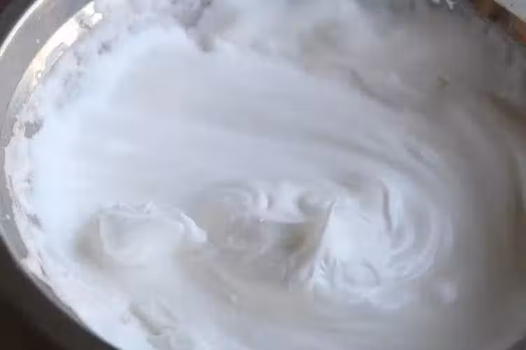 4、分一半的蛋白霜到米糊里翻拌均勻,切不用畫圓的方式拌;