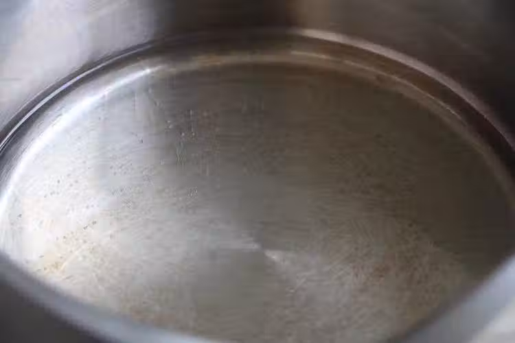 2、煮開的植物油倒入一個稍大的盆里,然後倒入120克提前過篩的麵粉,攪打至細膩無顆粒的狀態;