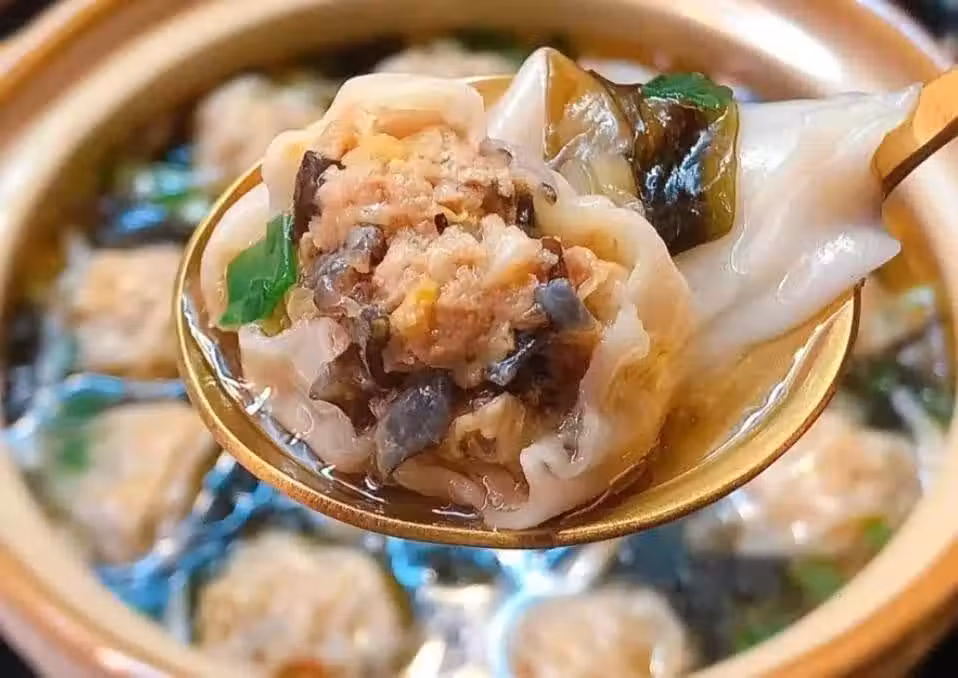 (6)加入餛飩湯,輕輕翻拌均勻即可,做法簡單,一學就會,好吃又營養,皮薄餡大,湯汁鮮美,大人小孩都喜歡吃!