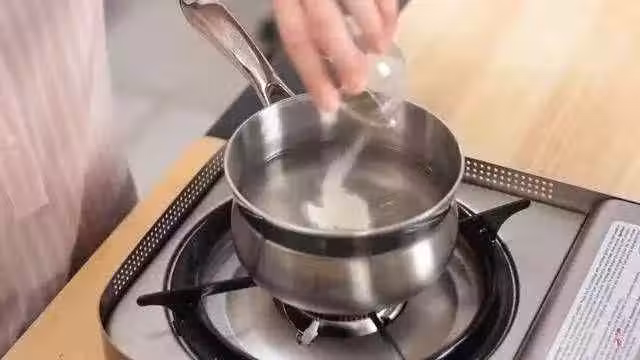 另起一鍋,加入 500g 鮮椰汁,8g 瓊脂攪勻