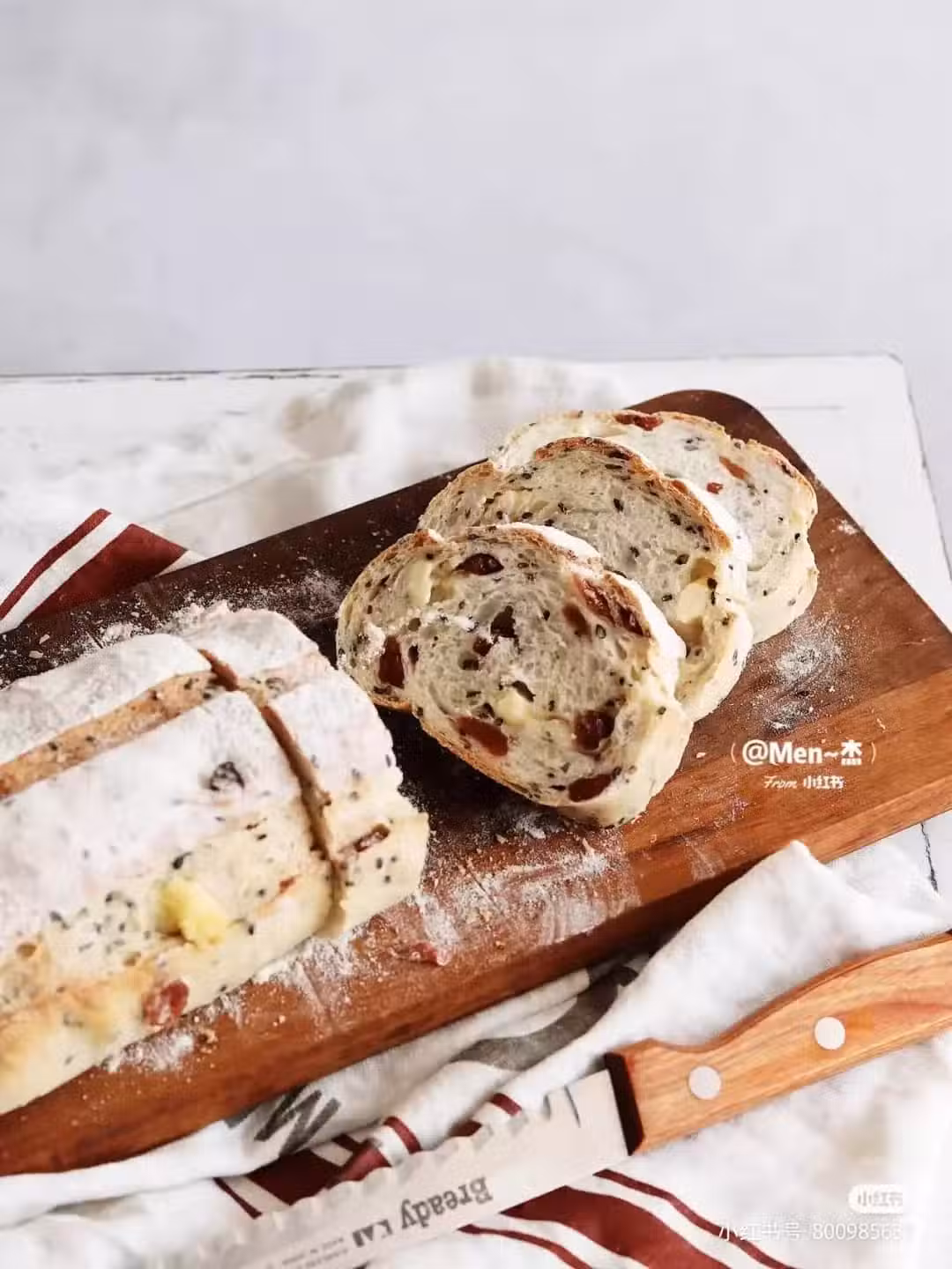 🥖黑芝麻蔓越莓麵包,無油糖無需揉面🉑