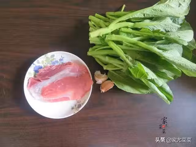 豬肉,廣東菜心,大蒜,花生油,食鹽,蚝油,生粉