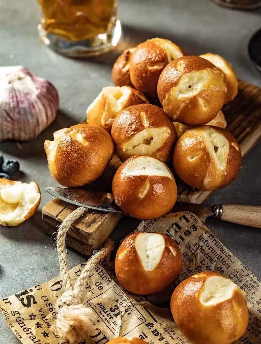 今天帶來的這個堿水包樣子嬌小,長相十分迷你,內里還有著奶油奶酪的餡料,烘烤後乳酪的香氣和小麥樸素的香氣混合在一起十分動人。