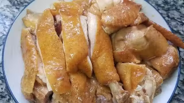 1.準備好半隻雞,把它瀝干水分,然後放入蔥、生薑、生抽、鹽、蚝油,把它們都均勻的塗抹在雞身上,腌制30分鐘左右。