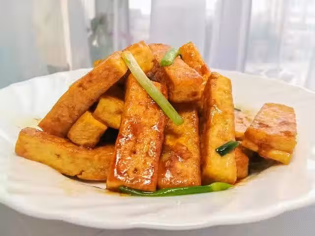 豆腐里的高胺基酸和蛋白質含量使之成為穀物很好的補充食品。豆腐脂肪的78%是不飽和脂肪酸並且不含有膽固醇,素有「植物肉」之美稱。豆腐的消化吸收率達95%以上。兩小塊豆腐,即可滿足一個人一天鈣的需要量。