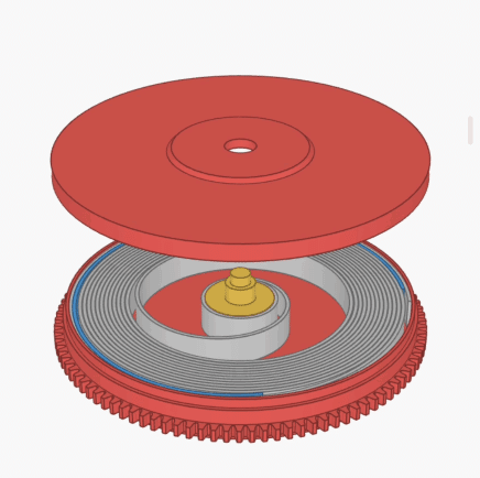 我們已經設法讓一些零件旋轉,人們可能會天真地認為我們可以在發條盒上安裝一個錶針來讓它計量時間。但是,這不會真正起作用——你可以在下面的演示中看到這一點。當這個「手錶」在你用滑塊給主發條上弦並放開後表現如何: