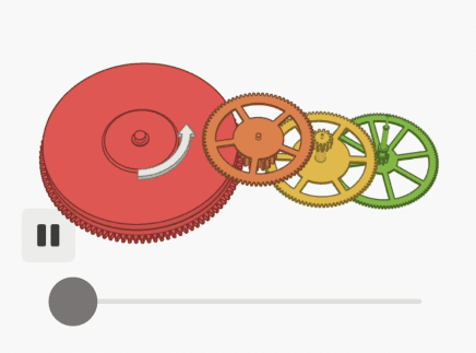 發條盒作為第一個輪子,它驅動第二個輪子,第二個輪子驅動第三個輪子,最後驅動第四個輪子。請注意,每個大齒輪驅動一個稱為pinion的小齒輪。小齒輪與下一個大齒輪安裝在同一軸上,因此我們能夠不斷提高每個軸上的速度。這種方法具有顯著的優勢——我們能夠使整體機構更小,更快使用一個以較慢速度旋轉的中間輪來驅動分針和時針。