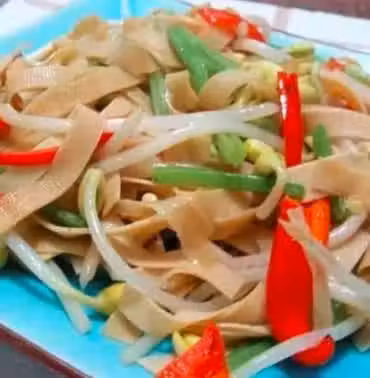 千張、黃豆芽、芹菜、紅尖椒。