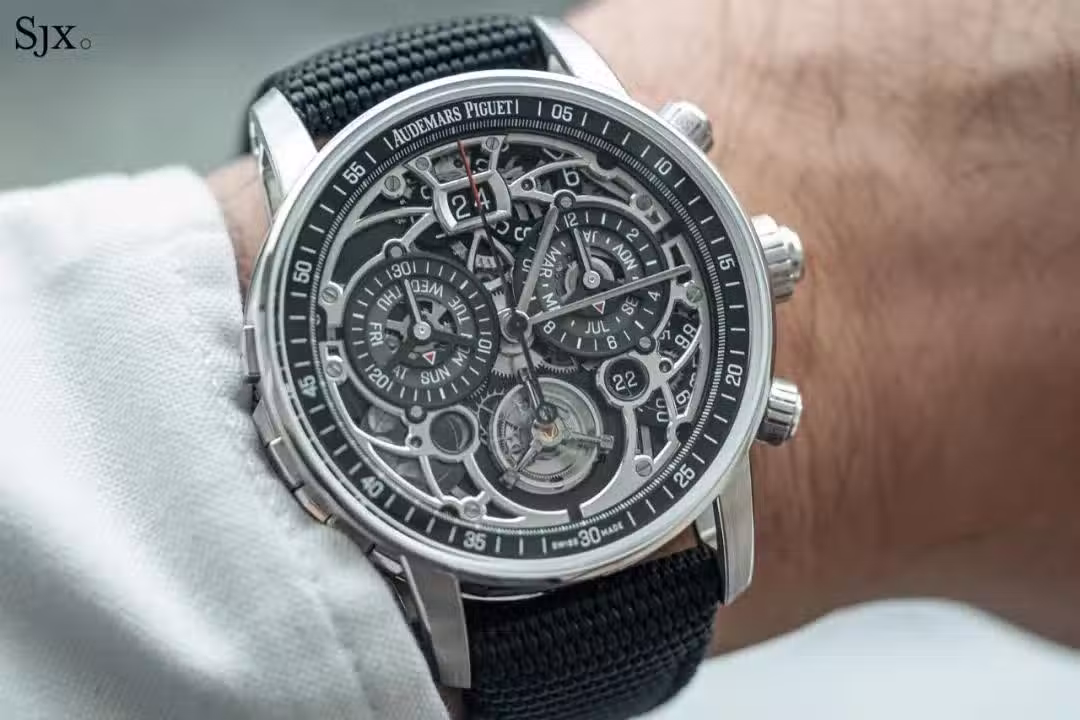 之所以在標題說「年度最牛逼的手錶」,那是因為愛彼本次將這款超級複雜功能的手錶尺寸做到了不可思議的42毫米寬、15.5毫米厚。新加坡鐘錶媒體SJX分享了一張實物上手照片,證明它真的是可以佩戴的「手錶」。 在此之前,隔壁百達翡麗的Ref.5175(47.4毫米寬,16.1毫米厚)和江詩丹頓的Ref.3600(45毫米款,13.6毫米厚)都是超複雜的功能,但尺寸感人,已經不能叫手錶了。甚至手腕尺寸大的歪果仁,都無法正常佩戴,完全屬於「裝飾品」了。
