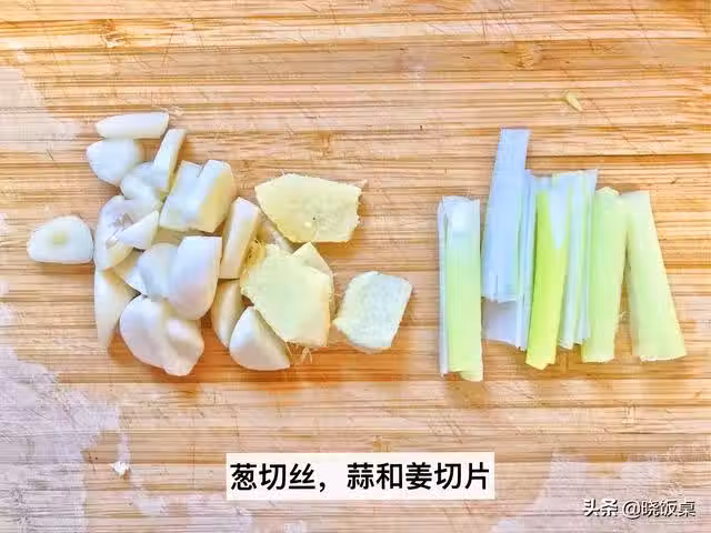 4、雞翅洗凈後把蔥切絲,姜蒜切片備用。