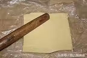 5、將麵糰擀成比黃油大點,能包裹住黃油
