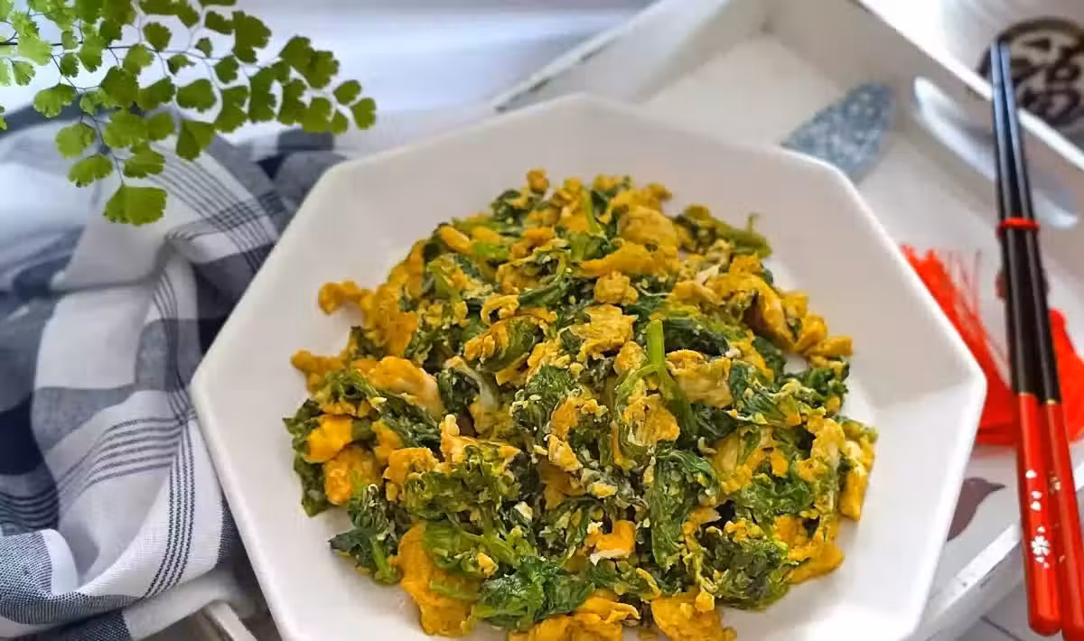 【食材準備】芹菜葉200克、雞蛋3個、鹽1茶匙