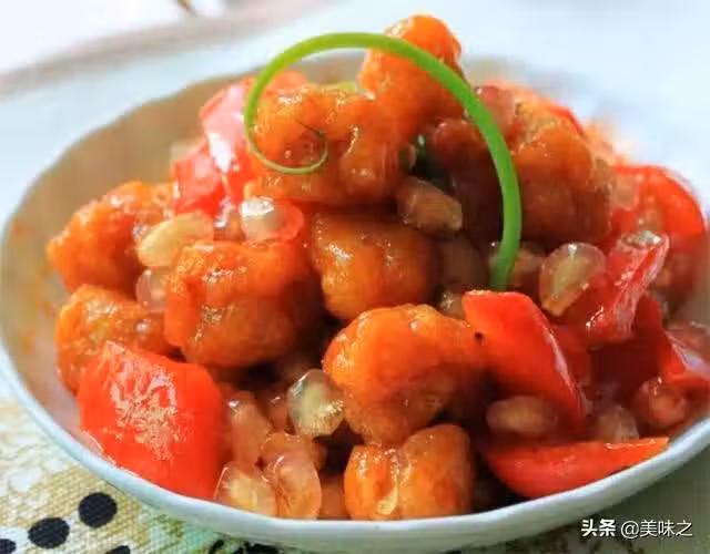 五花肉、石榴子、彩椒、胡椒粉、鹽、油、醋、糖、雞蛋、料酒、薑末、澱粉、香蔥。