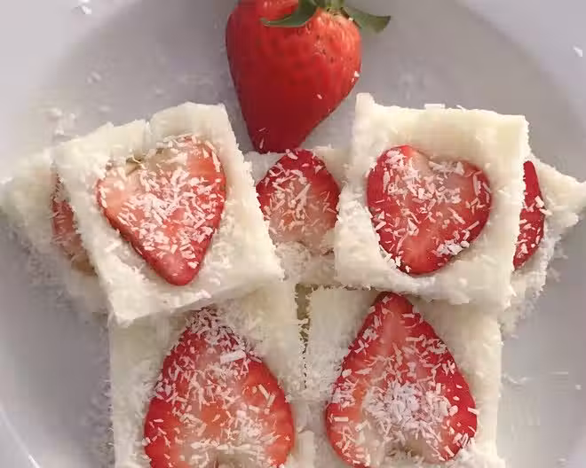 4、再倒入剩下的一半奶糊壓實,放涼後冰箱冷藏幾個小時,取出切塊撒上椰蓉!