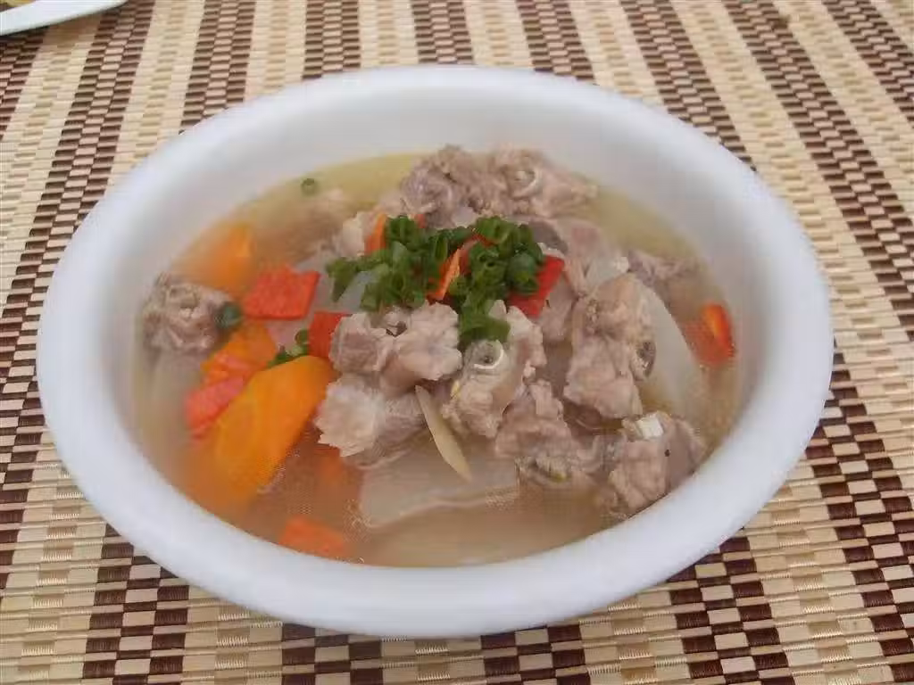 用料:豬小排 600、克蘿蔔 1根、胡蘿蔔 1、根鹽 適量、香蔥碎 適量、生薑 幾片、黃酒 適量