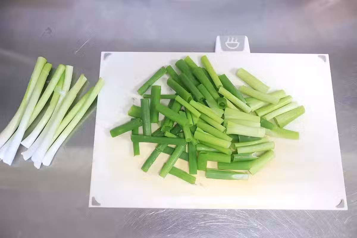 2. 小鍋中倒適量植物油,油2、3成熱時將蔥段入鍋,小火慢慢炸;