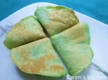 食材:蛋2粒、白砂糖2大匙、班蘭汁4大匙、中筋麵粉3大匙