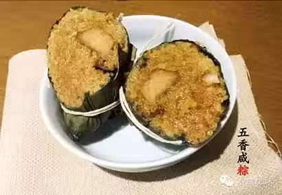 5.取新鮮洗凈的粽葉裹入已製作好的餡料併入鍋中煮,兩小時後出鍋即可食用。
