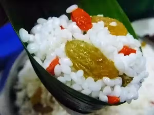 糯米、 豆沙、葡萄、干粽葉
