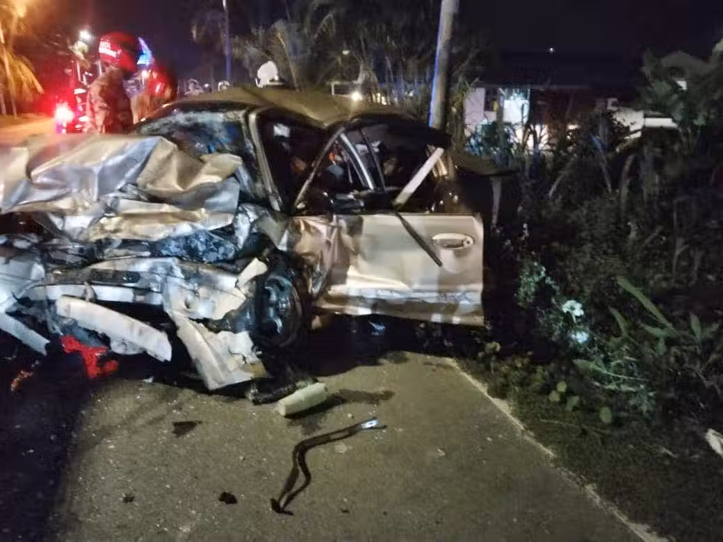 此駭人死亡車禍於今日凌晨1時許,在麻坡仲尼路靠近冷峇巴登2花園處發生。