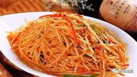 2.鍋上火,下入油燒至五成熱,下入豆瓣、泡椒末炒香炒出紅油,再下入蔥姜蒜炒香,下入土豆絲炒勻,炒熟,倒入調好的味汁,炒勻收汁濃稠,可撒適量蔥花出鍋裝盤。
