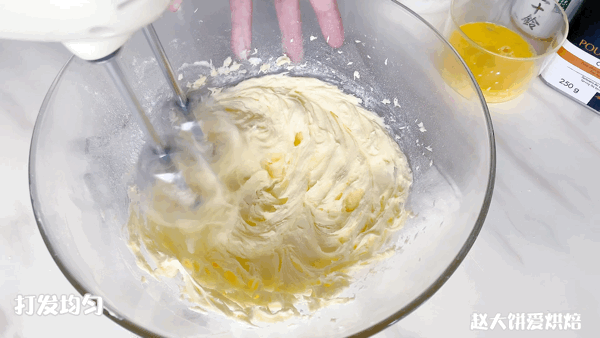 3、分兩次加入常溫的全蛋液,每一次混合均勻再加入下一次
