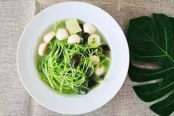 1. 豆苗清水洗一下瀝干水分,皮蛋切塊,丸子對半切開