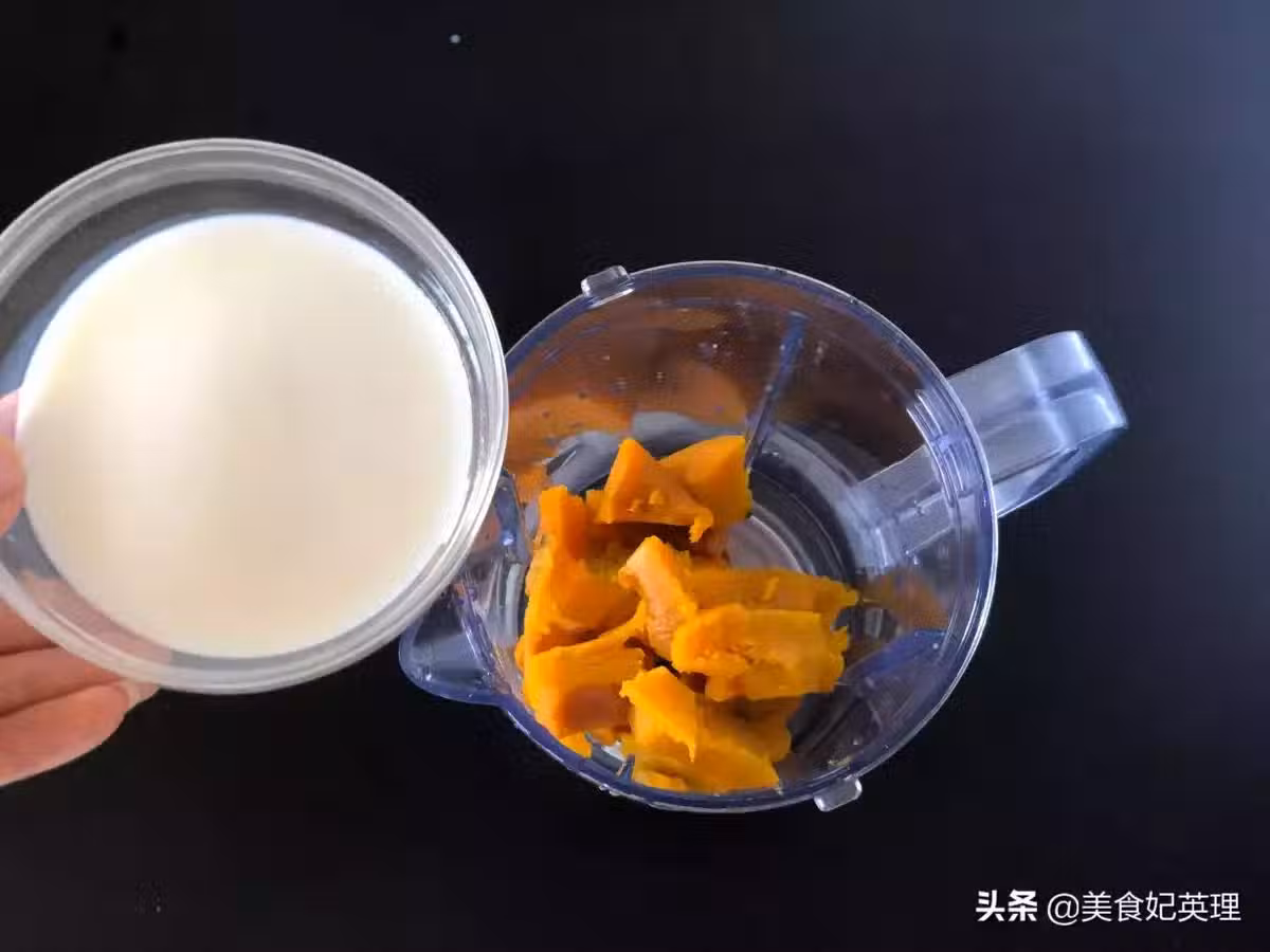 給孩子做這小零食,半塊南瓜一杯牛奶,甜甜糯糯入口即化~