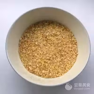 6、篩去斷細小部分,放入盤中待用(烤好的糯米粒用牙齒咬一下,可以很輕易嘎嘣脆咬斷證明烤好,如果沒有很快咬碎,且沒有聽的嘎嘣脆聲音,需要送入烤箱繼續烘烤)