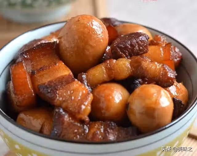 8、收汁,留少量的湯汁,附著在肉塊和鵪鶉蛋表面,好看有滋味。