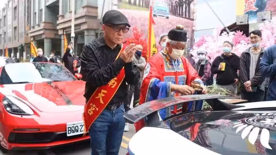 是錢的味道!​​​​​​供奉關聖帝君的台中南天宮今(5)日替「超跑」舉辦過火祈福會,現場來了許多車主求平安,包括勞斯萊斯、藍寶堅尼及法拉利等頂級超跑一字排開,總價值飆破2億,讓現場民眾看得超過癮,快門狂按停不下來,記錄這難得的景象。