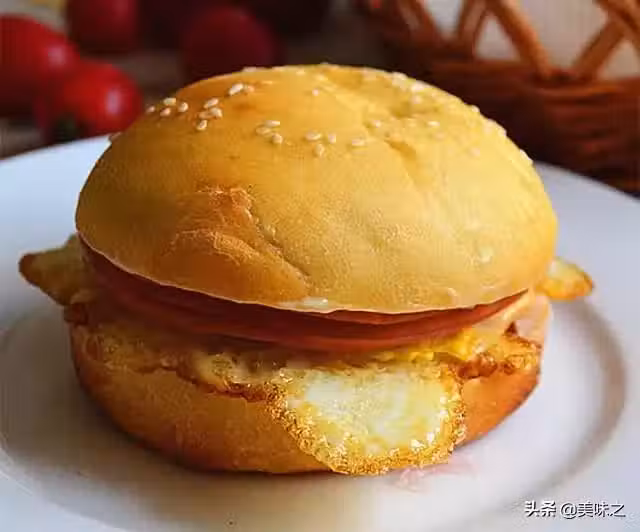 高筋麵粉240克、低筋麵粉60克、牛奶190克、糖20克、鹽2克、酵母3克、橄欖油15克、雞蛋2隻、白芝麻少許、火腿適量。