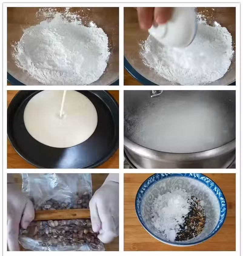 第十九步:面板上撒些提前炒熟的糯米粉
