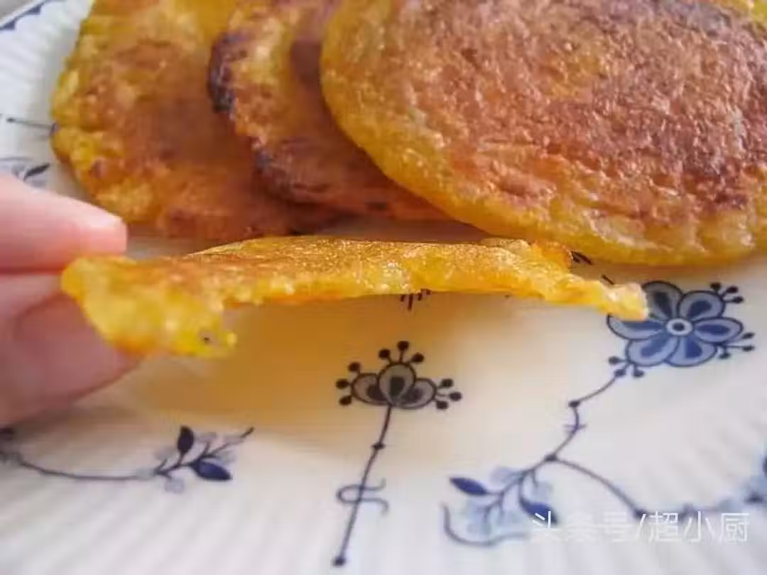 等煎一下後不沾了就翻面用鏟子壓扁