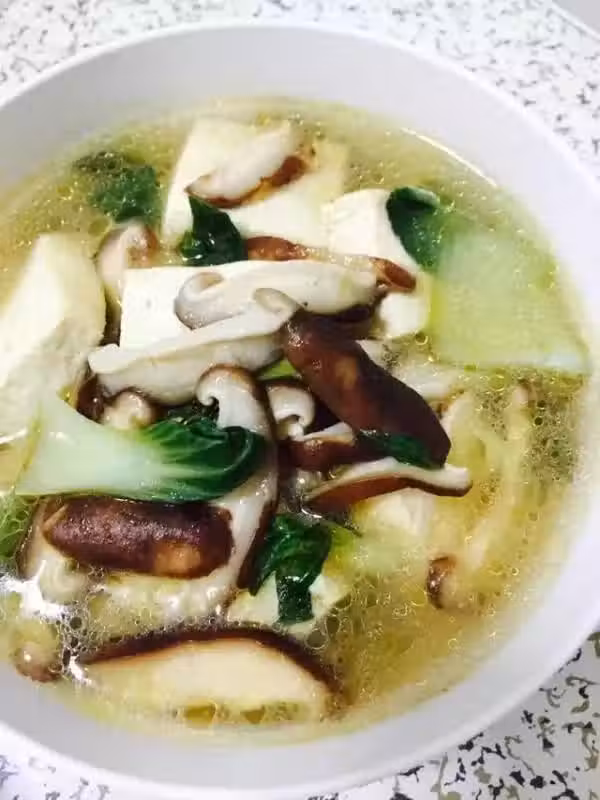用料:豬肉絲、鮮香菇、杏鮑菇、豆腐、香菜、雞蛋、蔥末、澱粉、鹽、醬油雞精、胡椒粉、米醋、香油、清水。